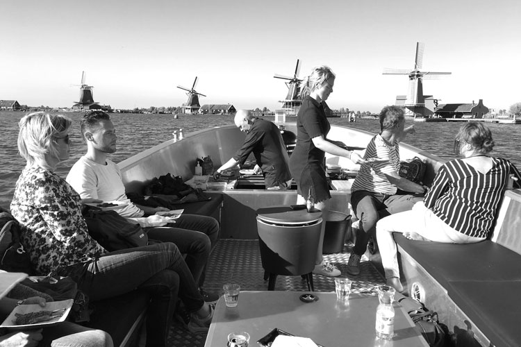 For example to De Woude, an island with a nature reserve of Staatbosbeheer. It is one of the five richest meadow bird areas in the Netherlands. In the summer we can moor for a refreshment on the terrace on the water, in the winter we can warm up in the characterful restaurant.